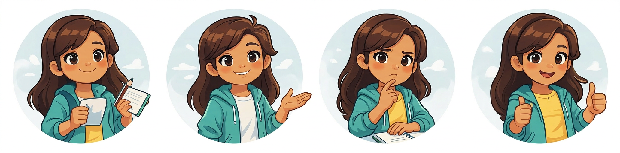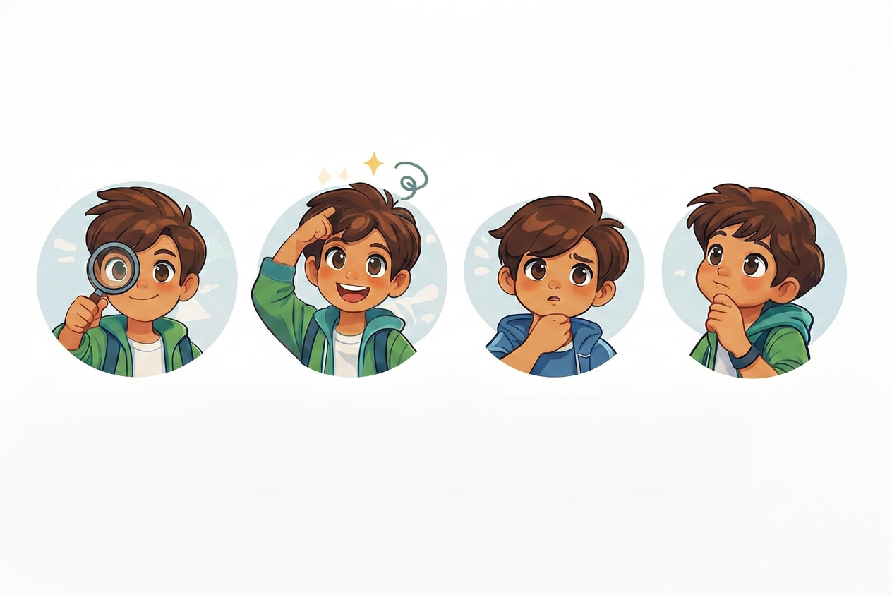 Milo brings the spark — try it, ask it, feel it. Lina brings the pause — name it, weigh it, choose on purpose. That's the loop your child practices every single week.